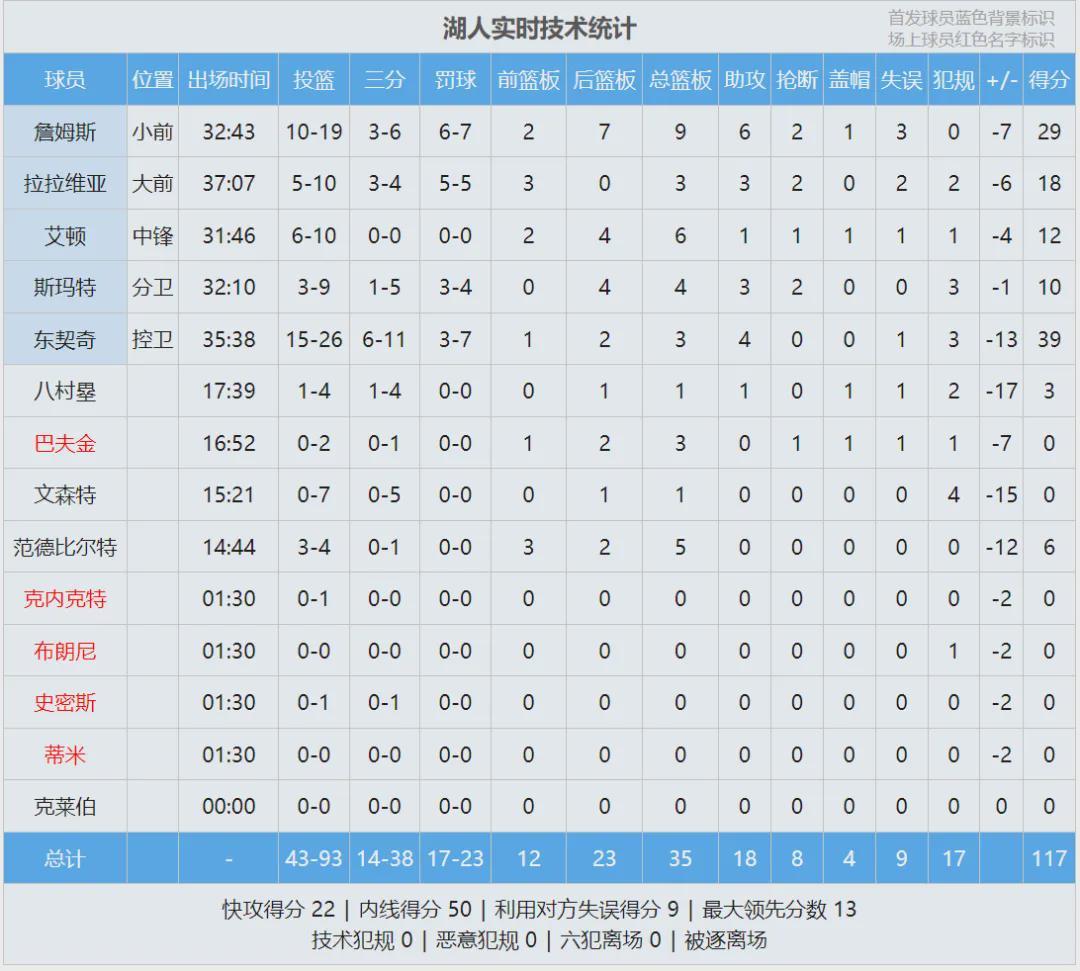 湖人本赛季至今,总净胜分还是负数!最后来看看比赛数据,说说你的感受: